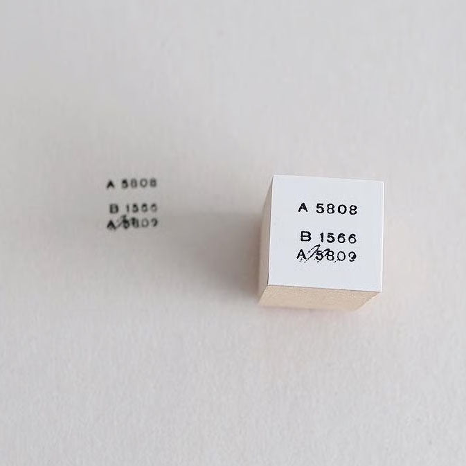 A small, minimalist stamp featuring a cluster of typewritten-style numbers and letters. With its clean design and slight irregularity, this stamp adds a quiet texture to your collage or journal pages. It’s especially effective as a finishing touch. Ideal for balancing your composition or filling in small empty spaces with subtle interest.