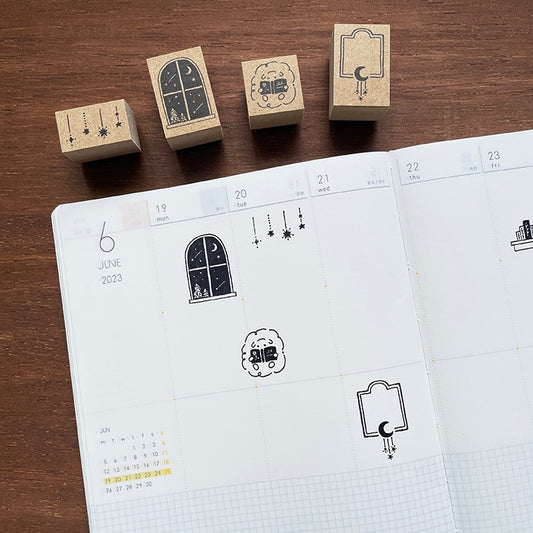 Stamp Marche Illustration Stamp - By the Window in the Moonlit Night