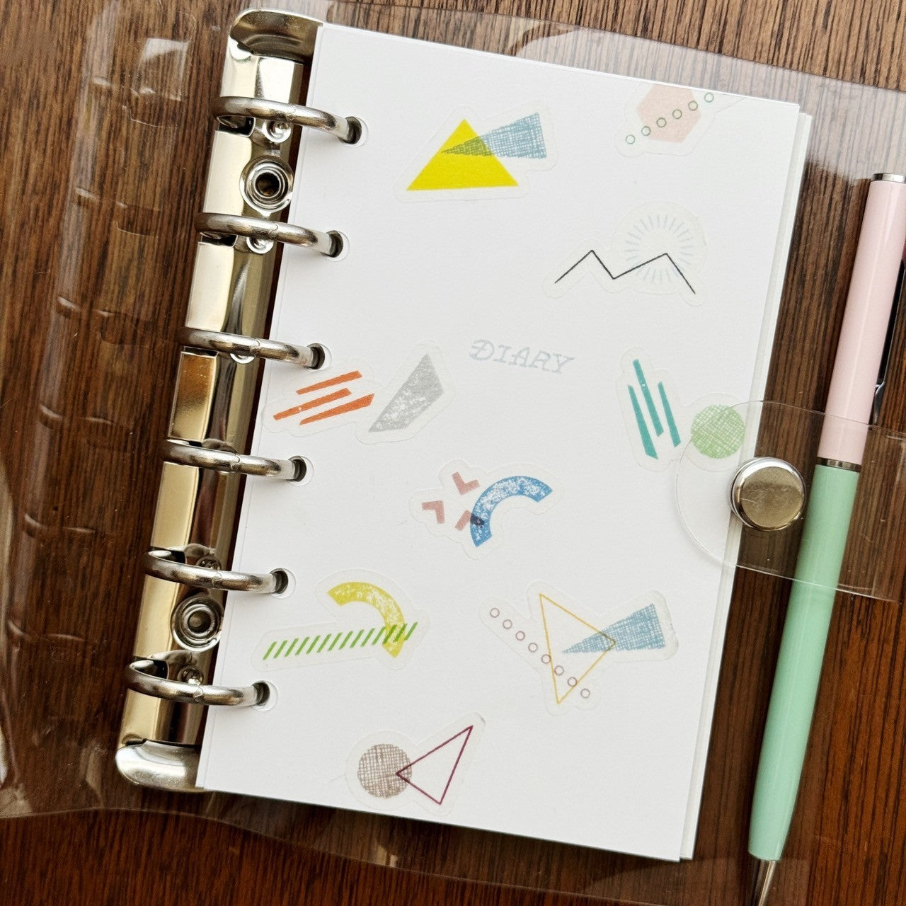 These stickers, made from masking tape washi material, feature a variety of abstract shapes design. They are perfect for adding color and charm to any surface.