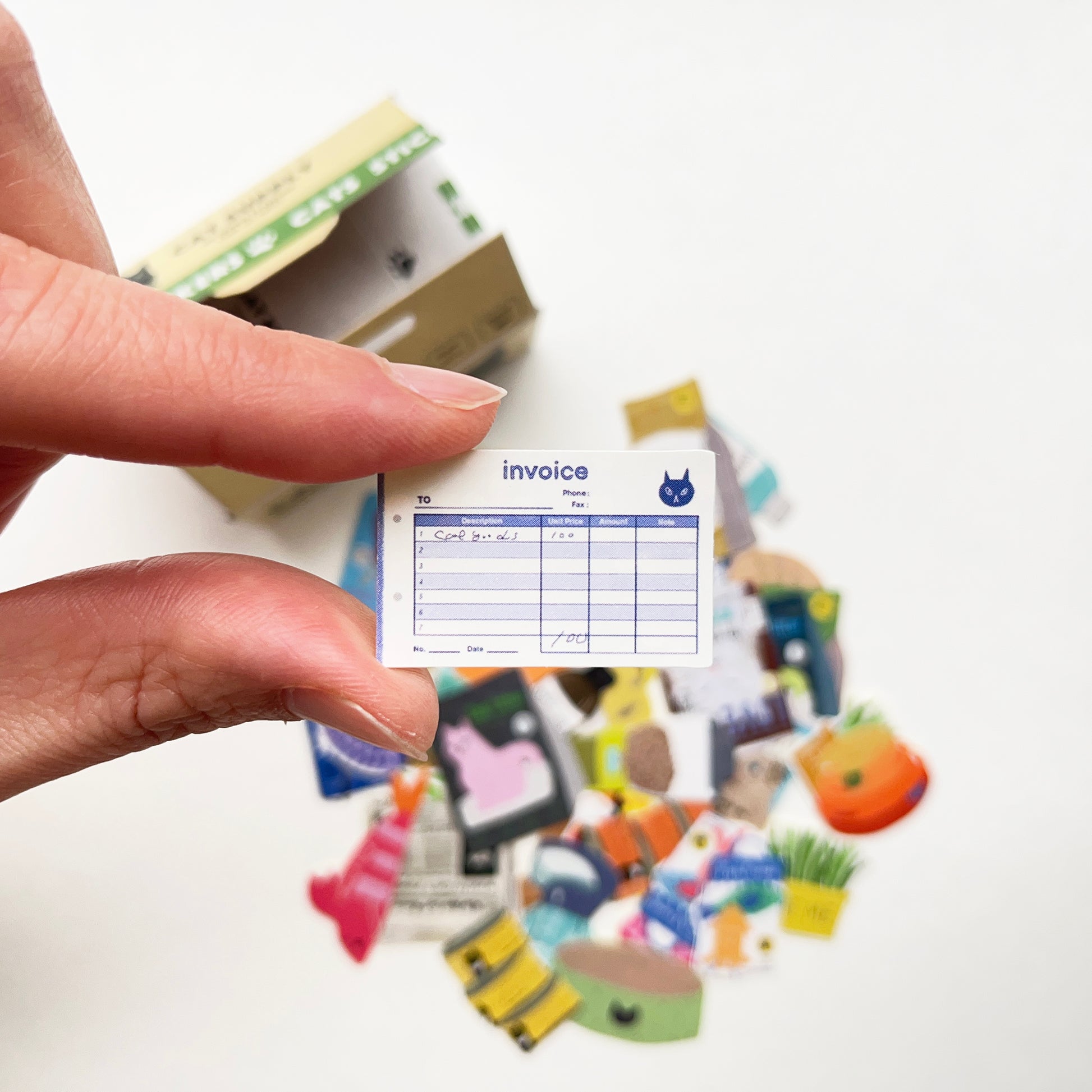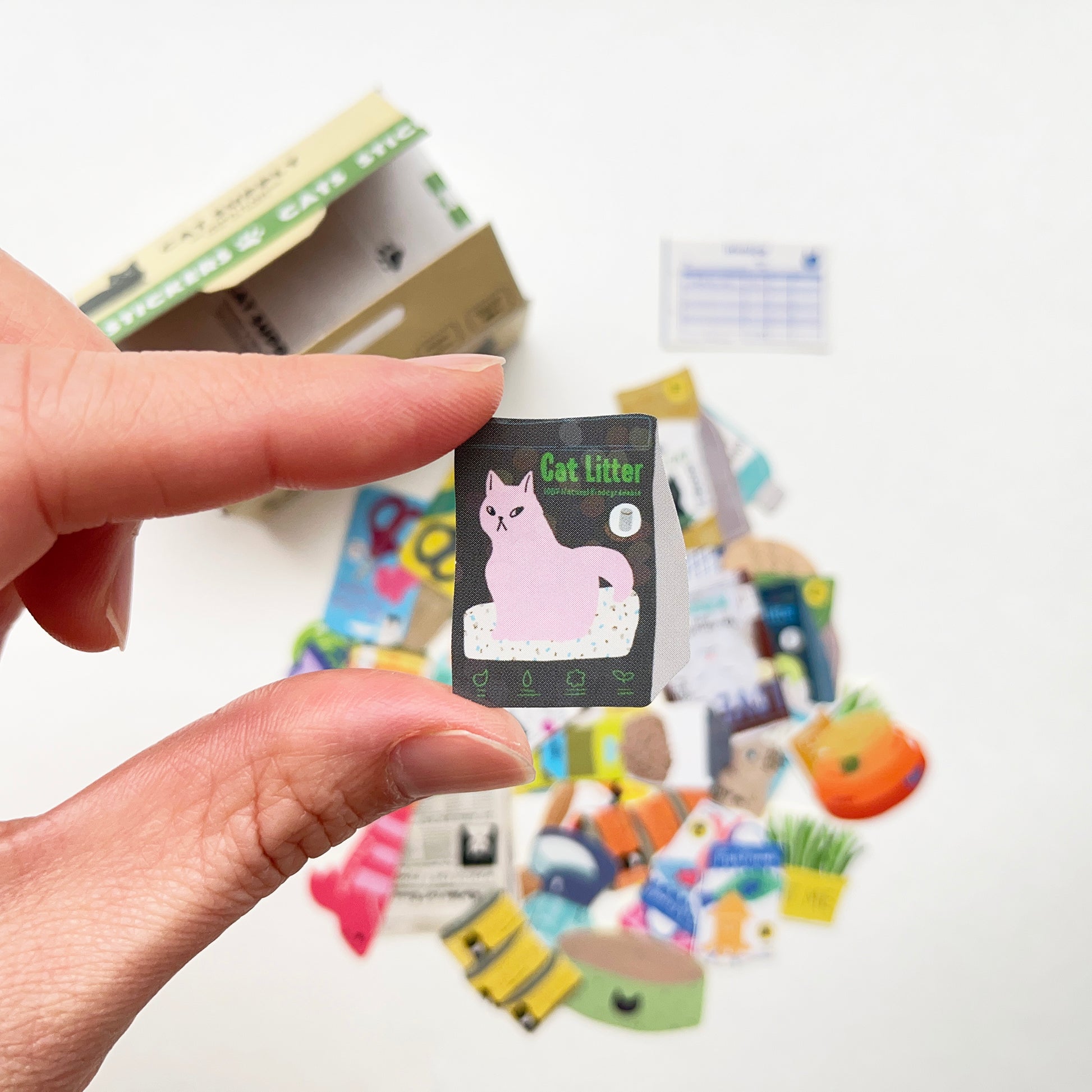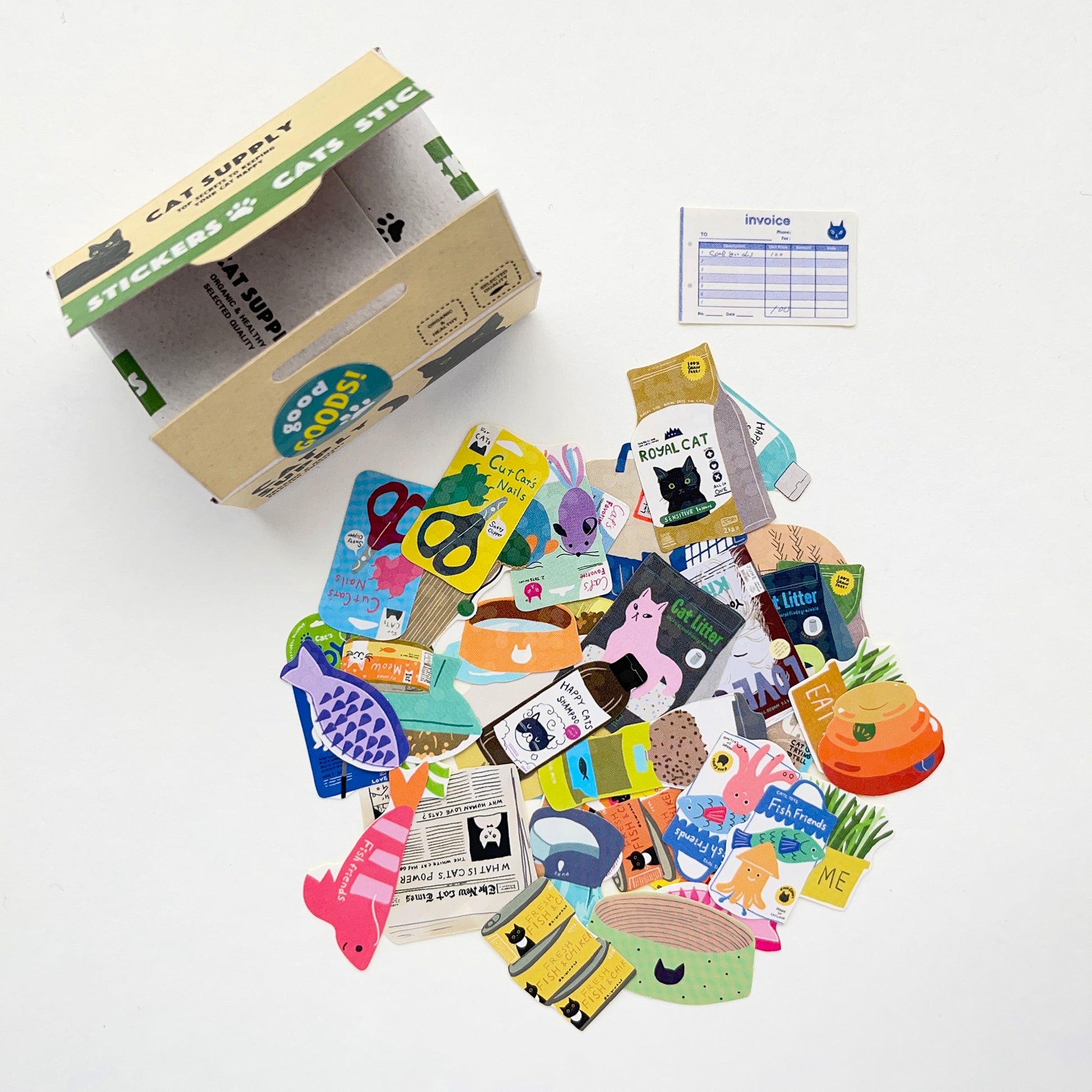 The box contains 39 stickers, all with different designs! It also contains a small piece of plastic wrap and a delivery note.
