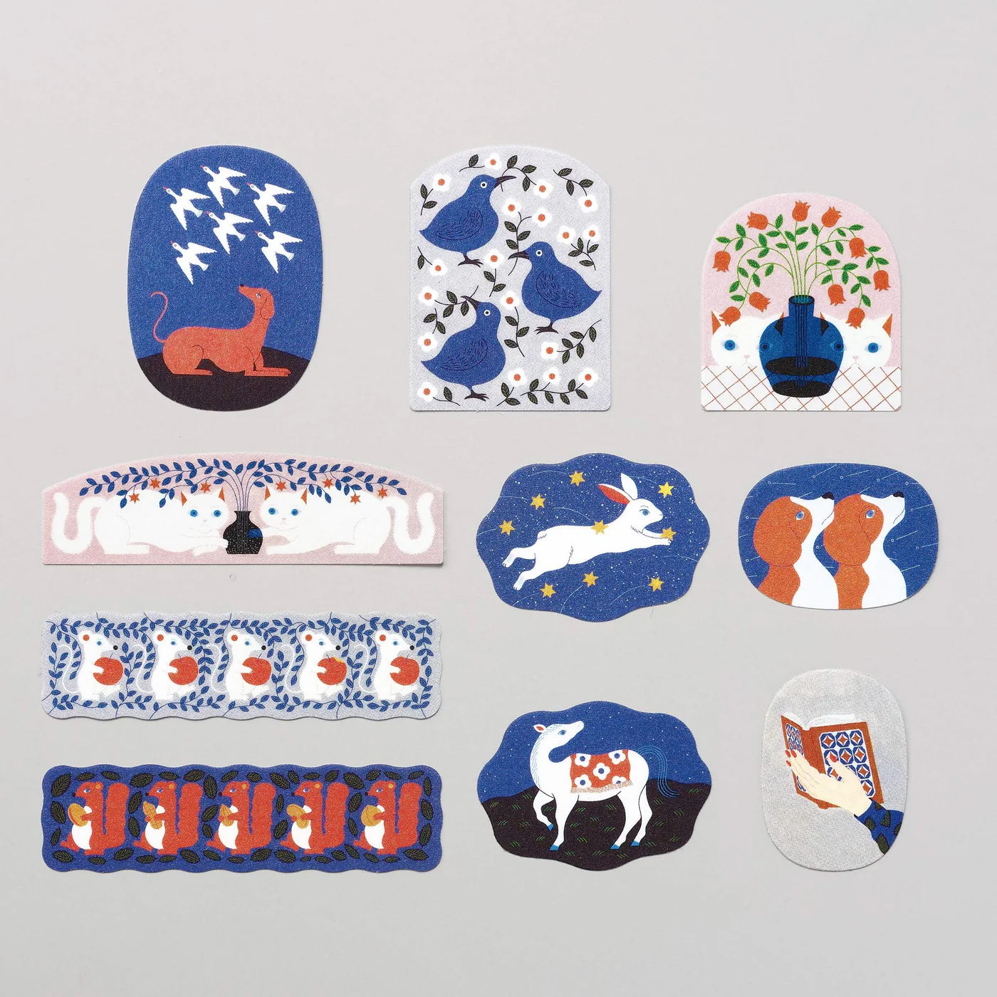 The KITTA Flake is a compact and portable set of flake stickers, perfect for on-the-go use. Made from tracing paper, these stickers are lightweight and come in a convenient case for easy organization and selection.