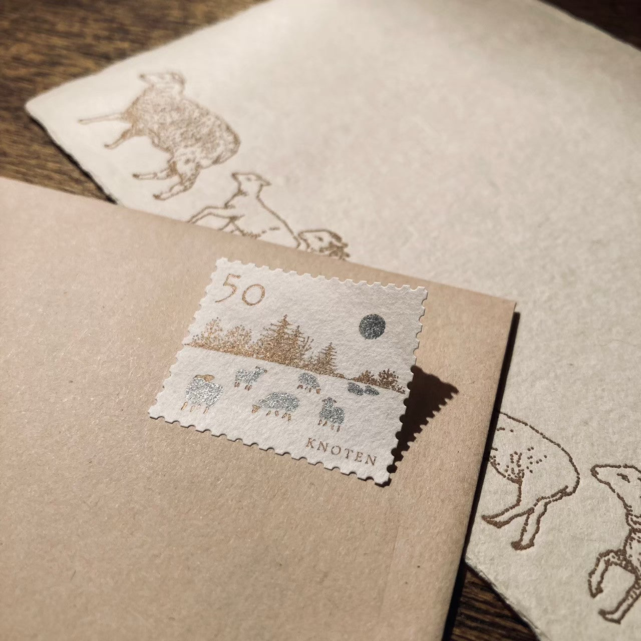knoten letterpress Postage Stamp Sticker Moonlit Night