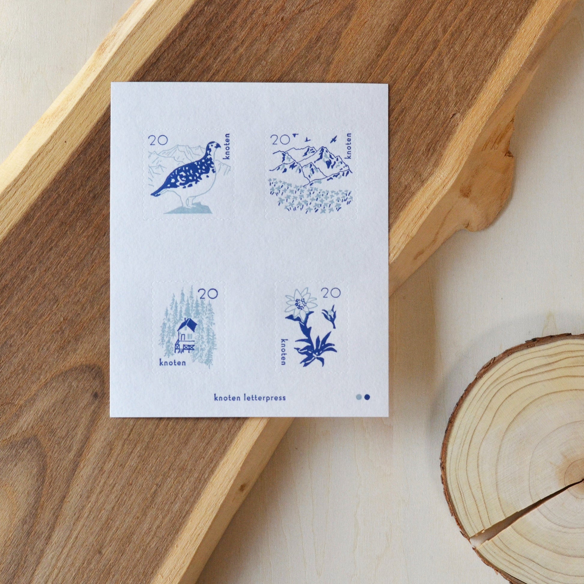 knoten letterpress Postage Stamp Sticker Mountain