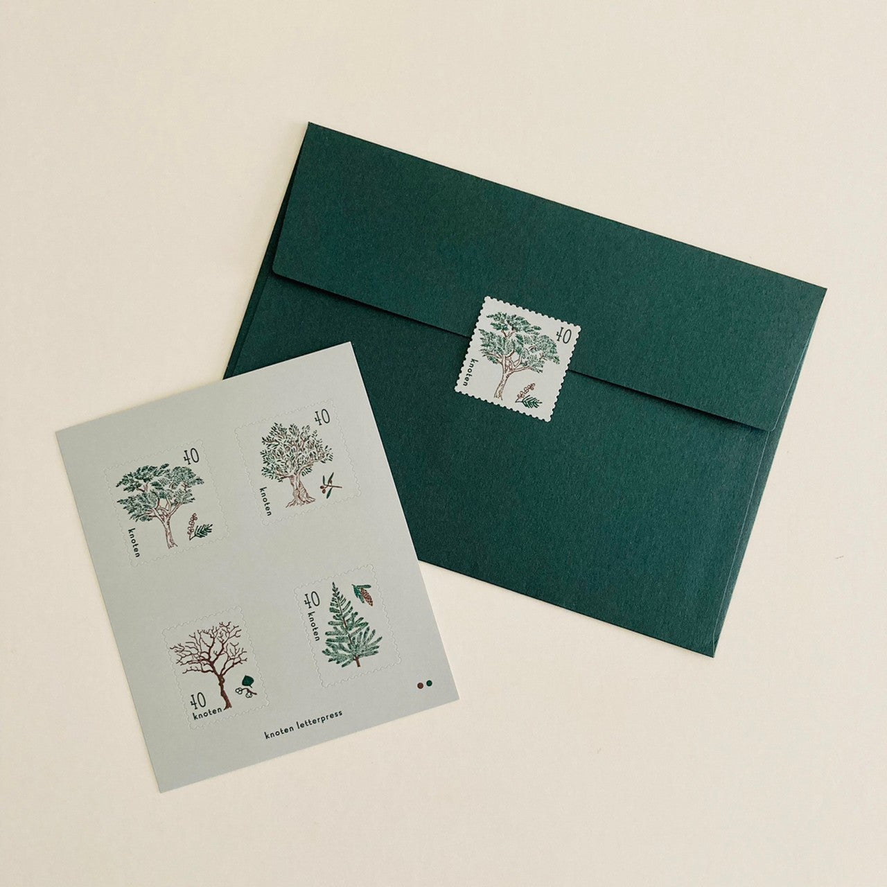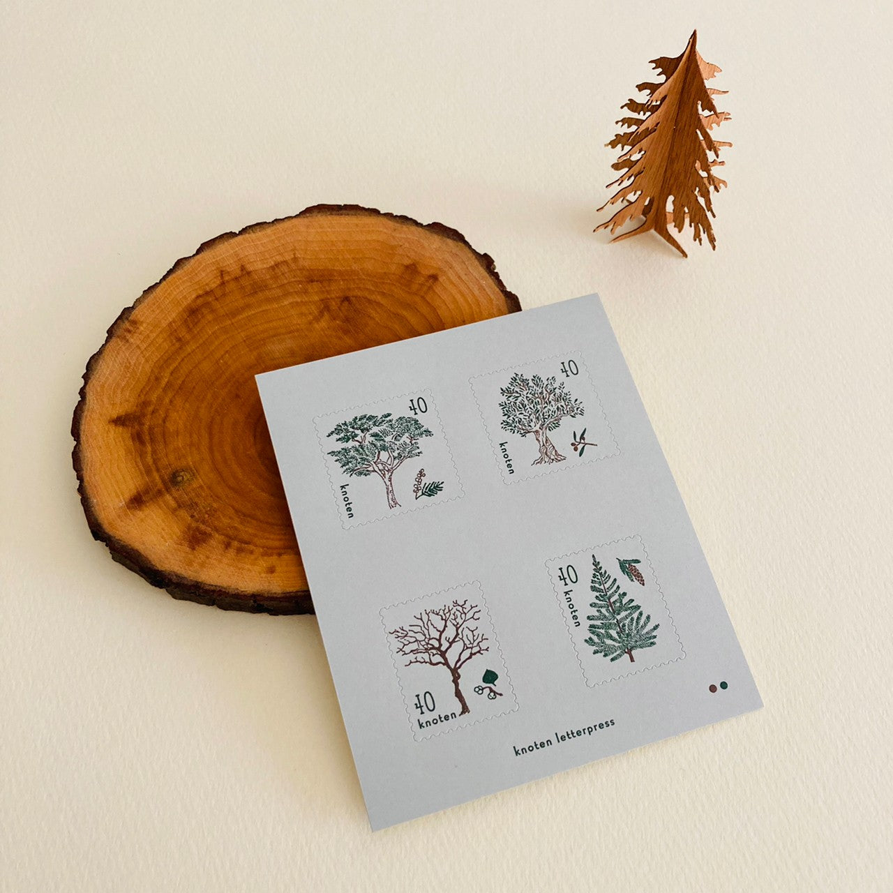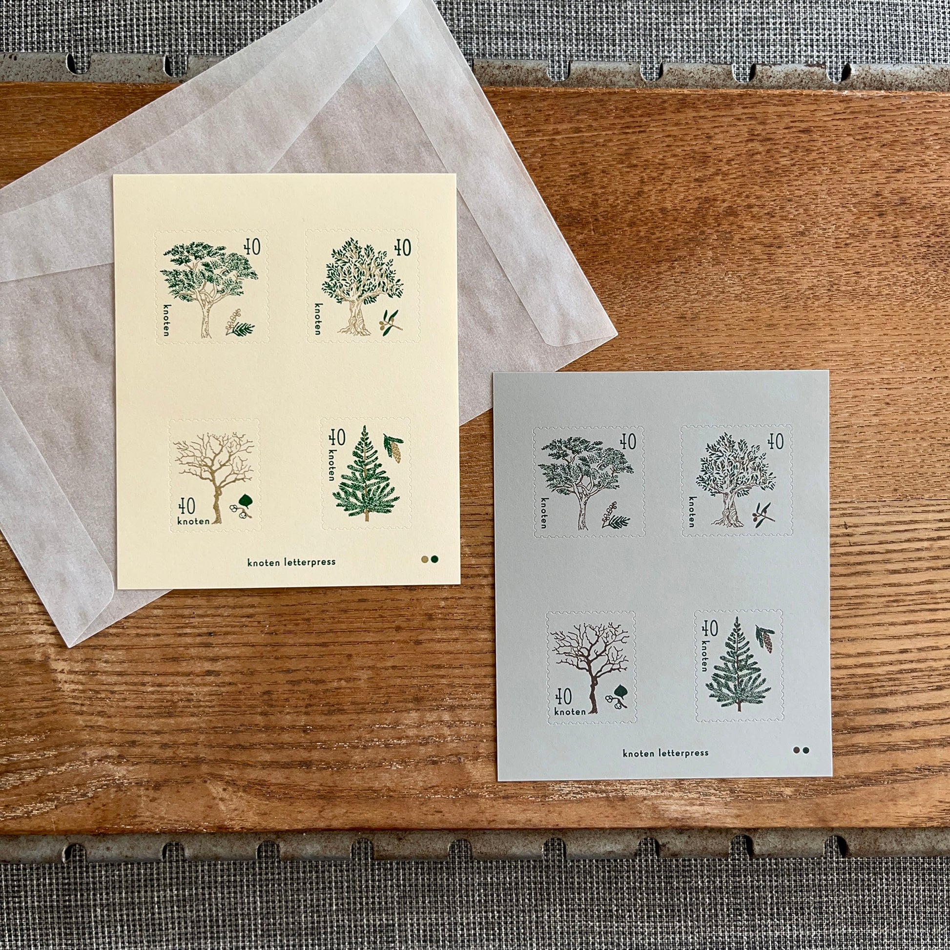 knoten letterpress Postage Stamp Sticker Trees