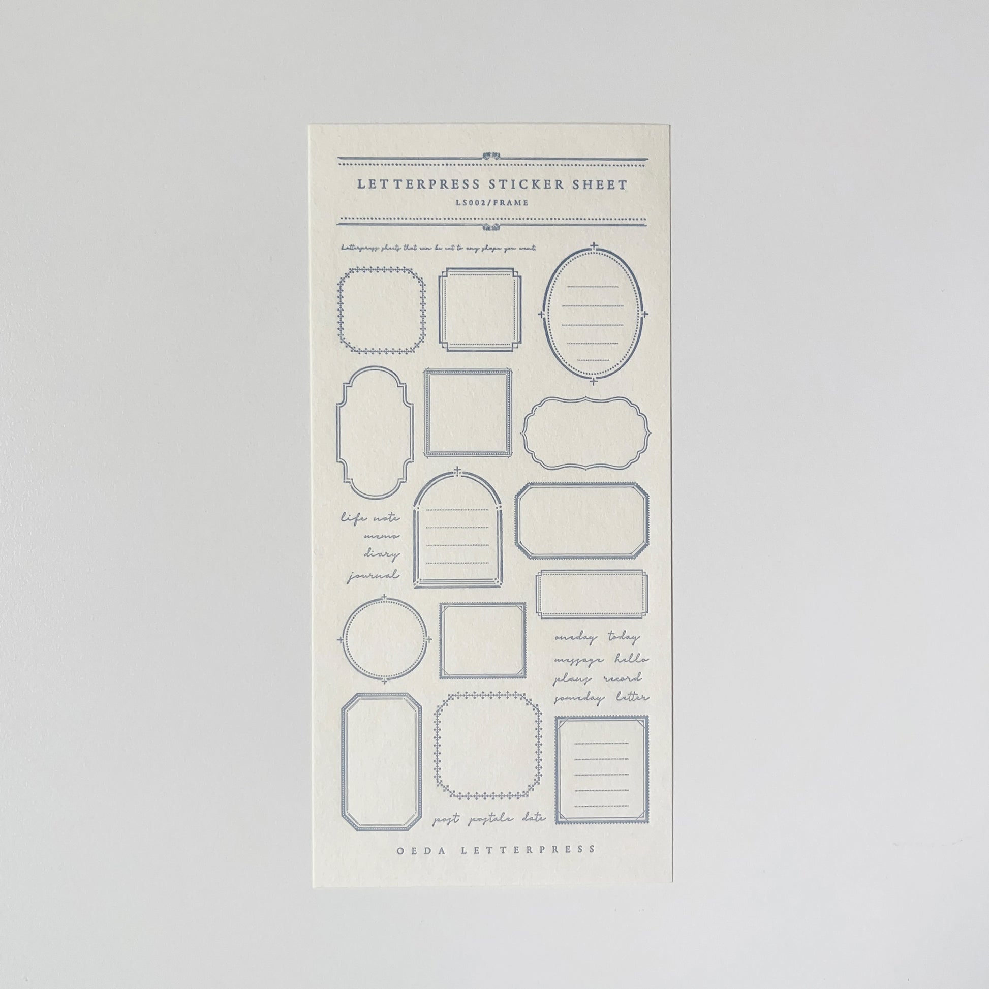 A sticker sheet by OEDA LETTERPRESS, featuring beautifully letterpress-printed frames on softly textured paper.