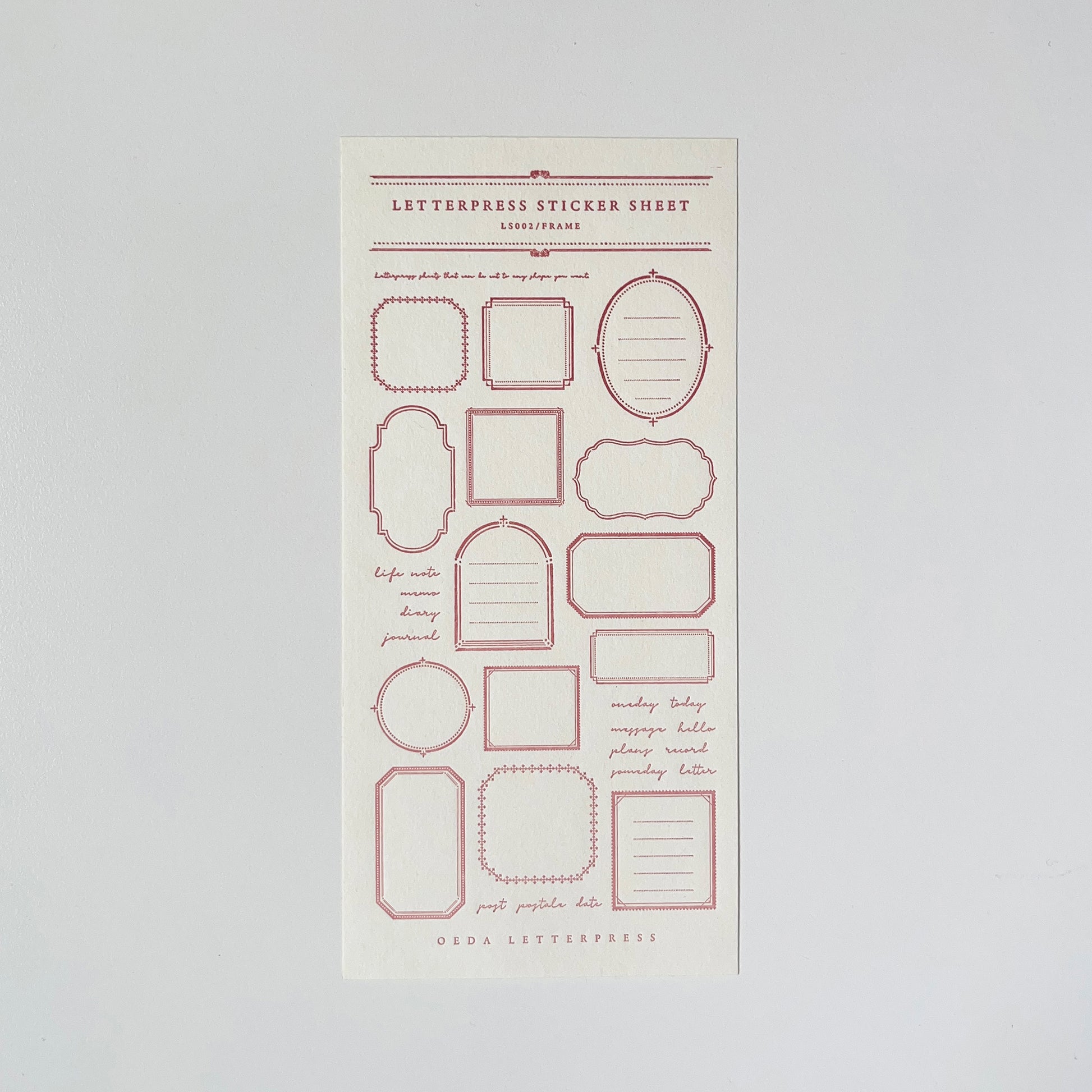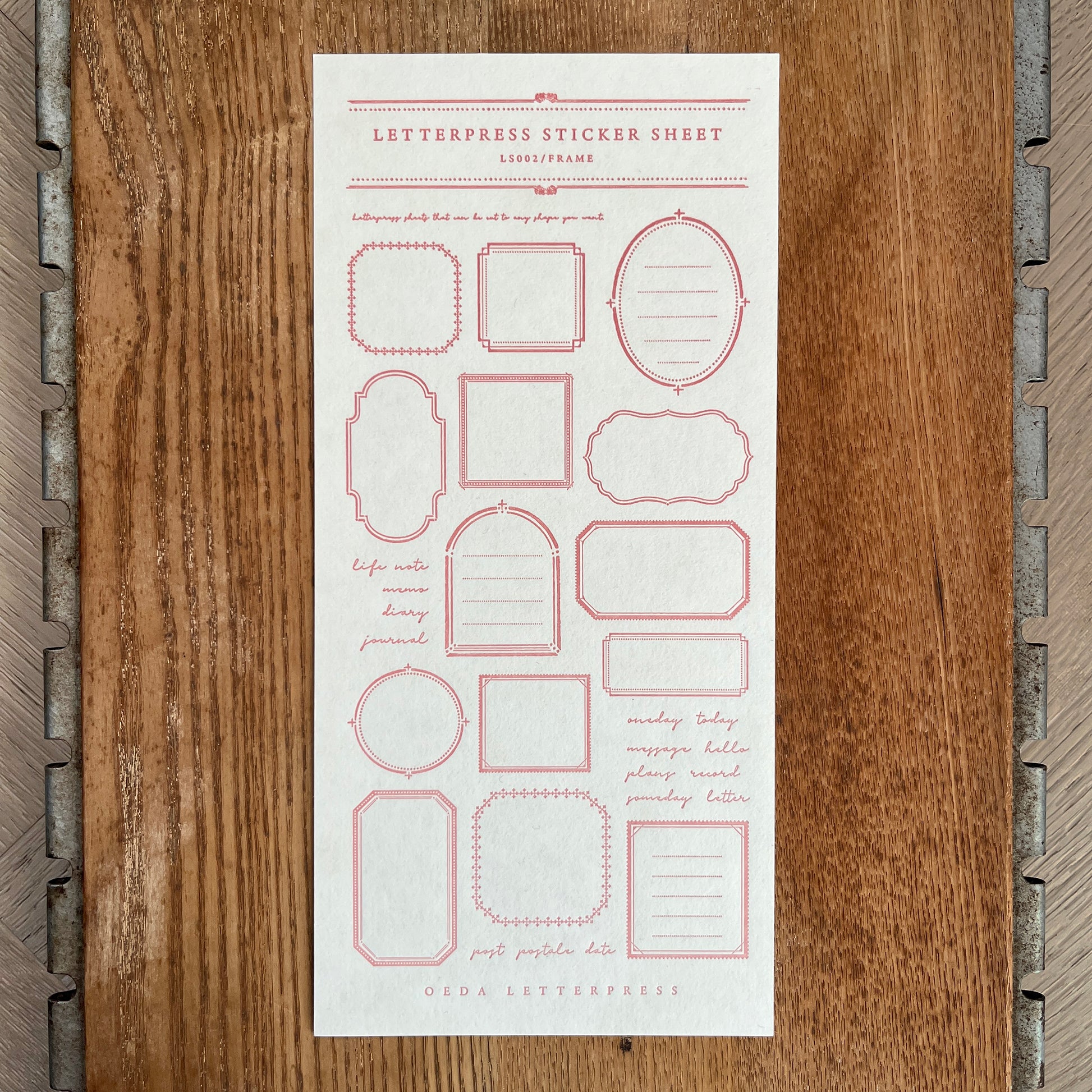 A sticker sheet by OEDA LETTERPRESS, featuring beautifully letterpress-printed frames on softly textured paper.