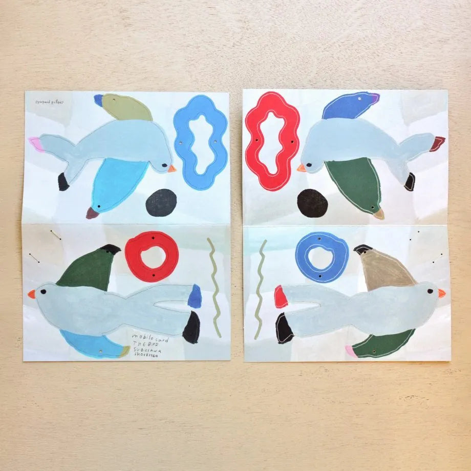A colorful and artistic mobile card designed by Subikiawa. Its bright tones add a cheerful accent to your room, while the stylish design fits naturally into modern interiors. The colors differ on each side, so it looks charming as it gently turns in the air.