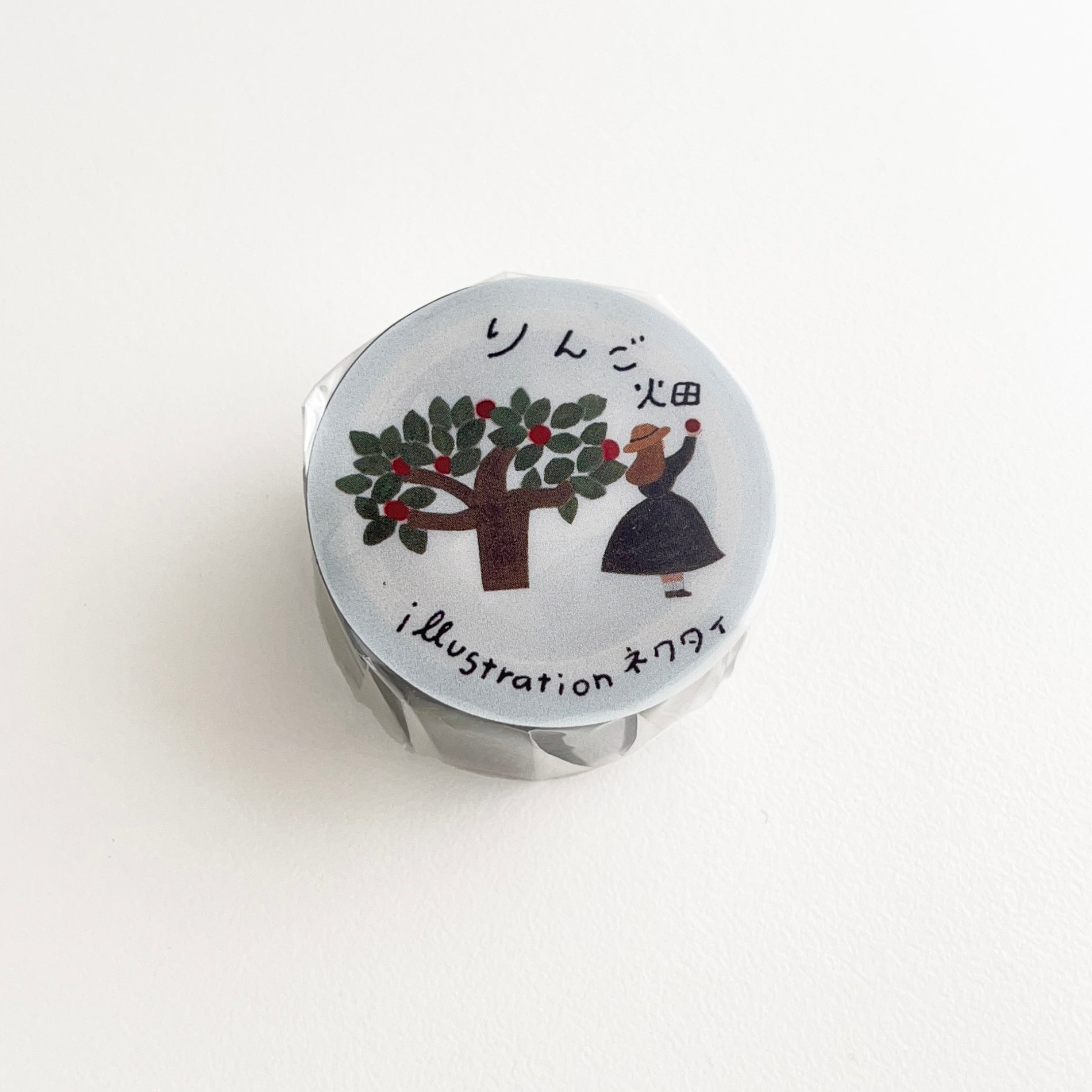 A sweet scene from the apple orchard, designed by illustrator duo NECKTIE. A cheerful girl gazes at the freshly picked apples—her happiness is contagious! This charming tape is perfect for adding a playful touch wherever you stick it.
