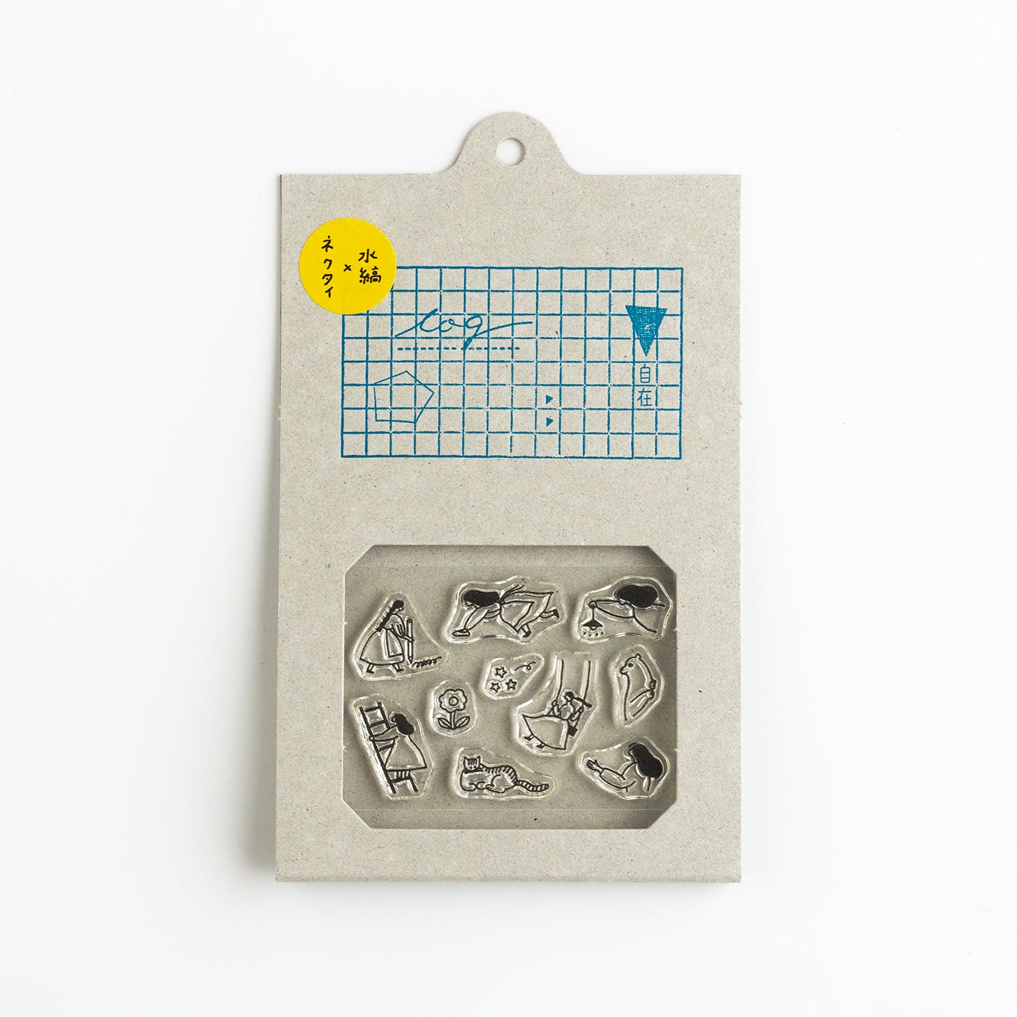 Add a gentle, whimsical touch to your journal with this clear stamp set featuring charming girls, a cat, flowers, and stars—designed by necktie in collaboration with mizushima.