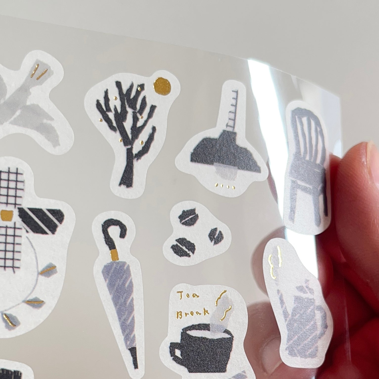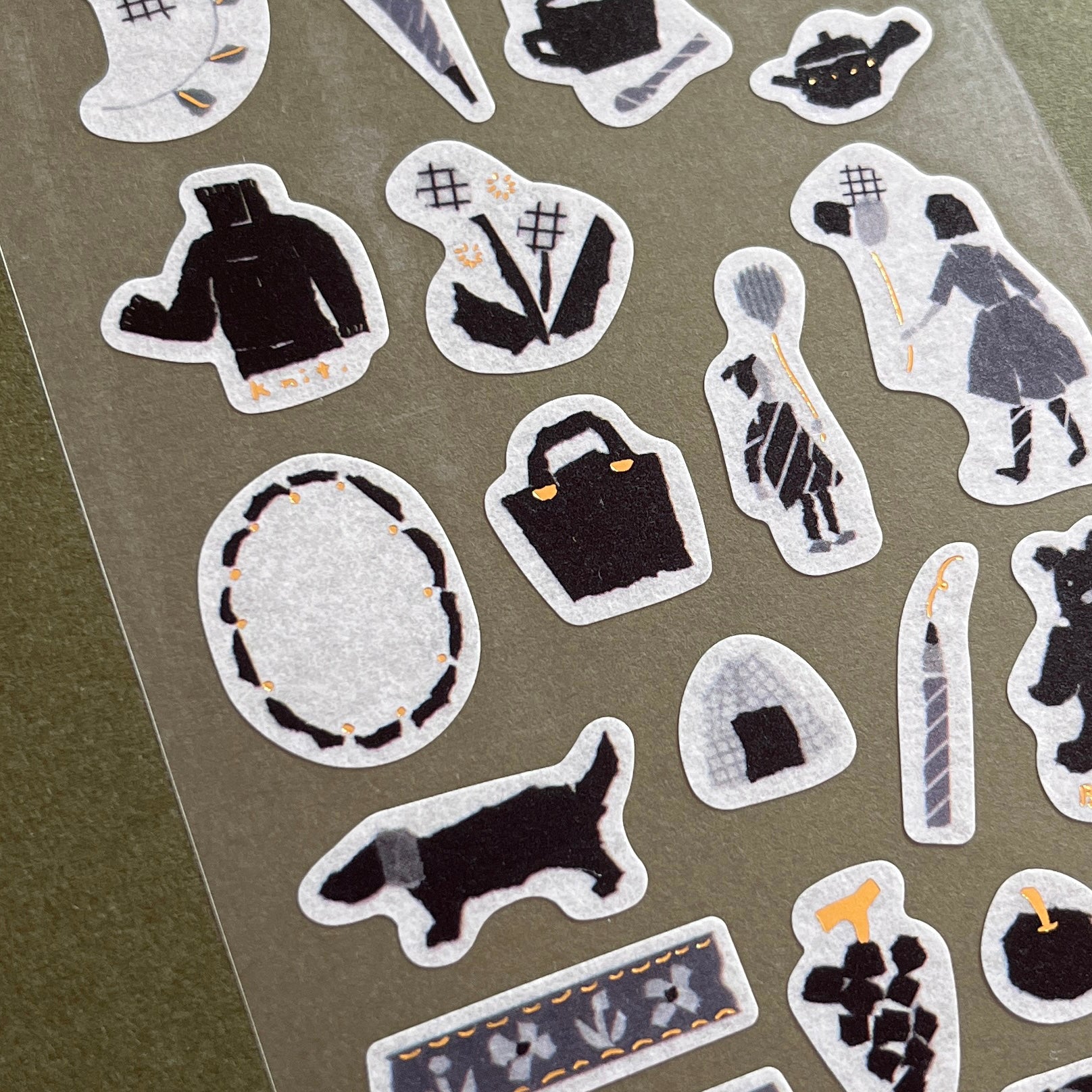 These elegant stickers feature artwork by Miki Tamura, a torn masking tape collage artist (Chigiri-e) and illustrator based in Kansai, Japan. Each piece is made with bits of torn masking tape, carefully arranged into refined, delicate compositions.