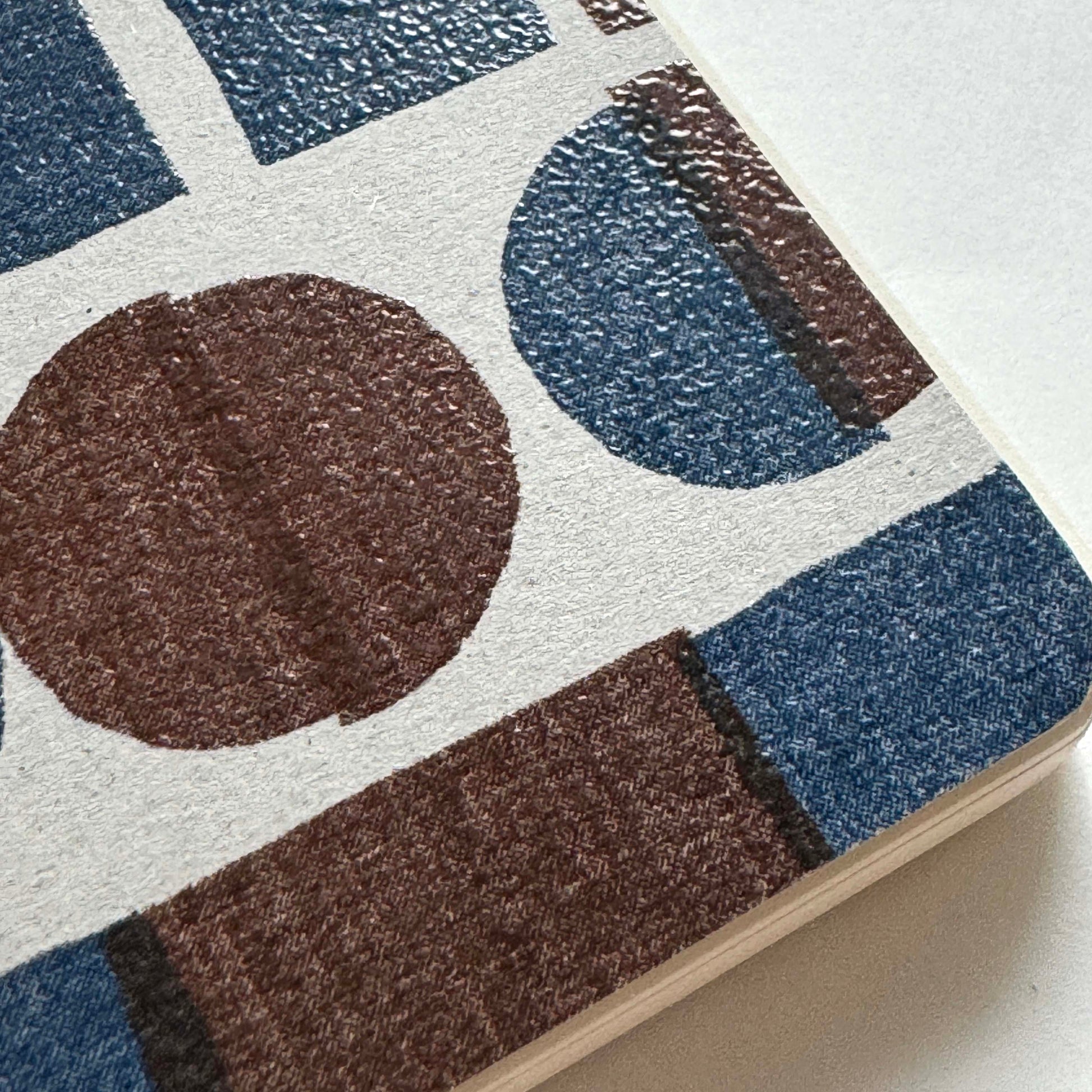SHIPPO Note is a ring notebook with a bookmark tail (=shippo). The "Circle and Square" design features circles and squares with rich textures, arranged like building blocks. Some parts of the cover print have a glossy, raised finish, creating a beautiful contrast with the rough texture of the cover paper. The inner pages are made of "Menuet" paper, which has a soft texture that provides a pleasant writing experience with both pens and pencils. The bookmark is divided into two, making it easy to use separately for different purposes.