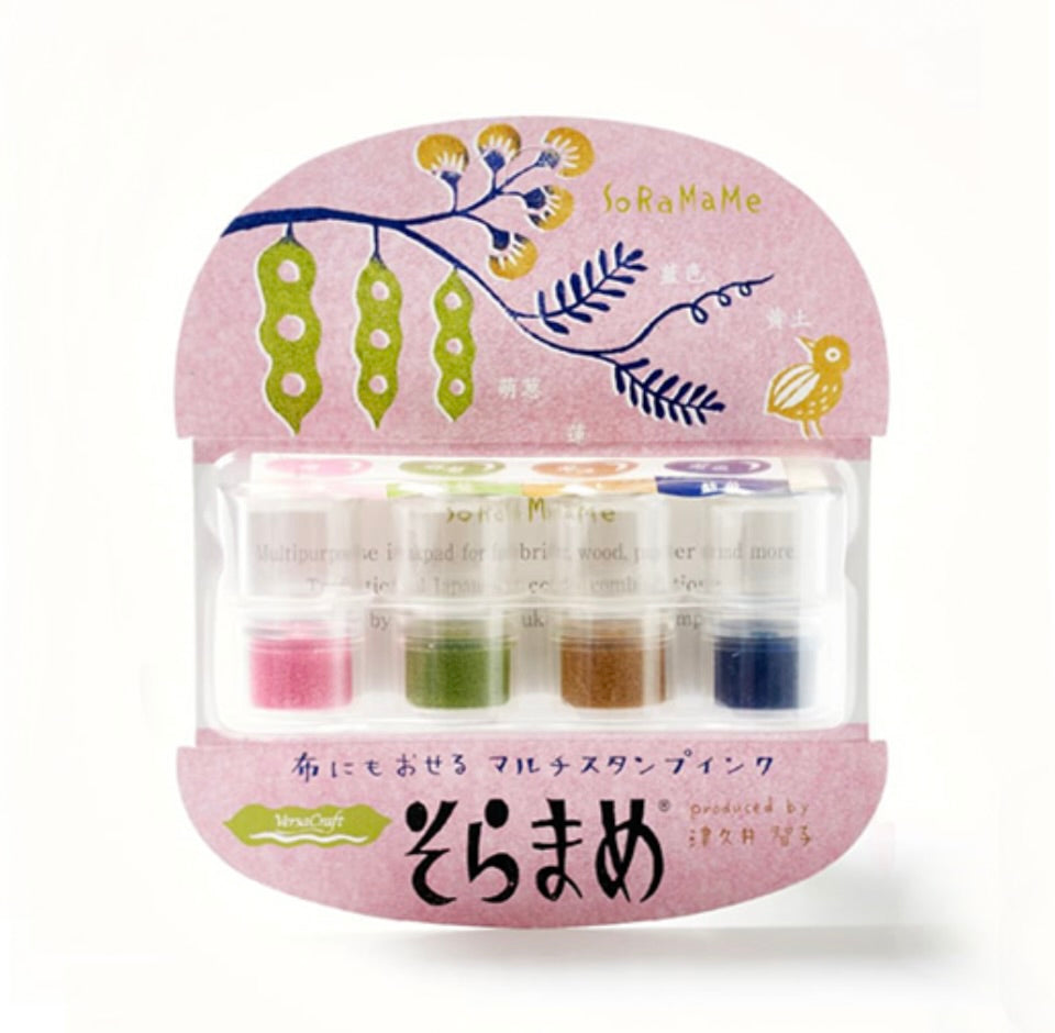 The SORAMAME Ink pad series comes in a 4-color set of small, easy-to-use ink pads. The mini size fits perfectly on your index finger, making it ideal for coloring different sections and applying ink to small stamp parts.