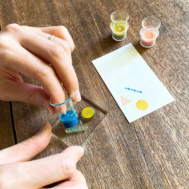 The SORAMAME Ink pad series comes in a 4-color set of small, easy-to-use ink pads. The mini size fits perfectly on your index finger, making it ideal for coloring different sections and applying ink to small stamp parts.