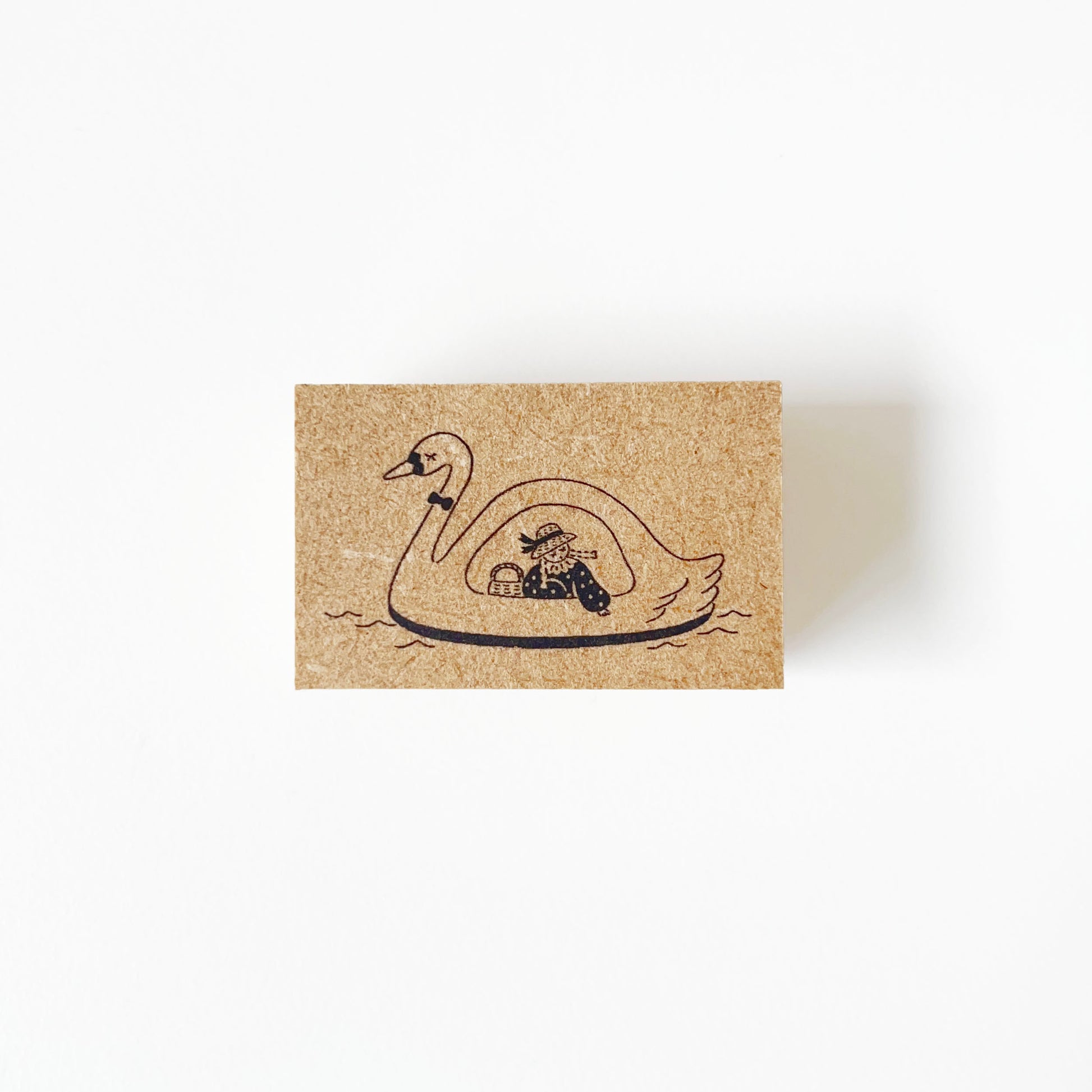 A charming stamp of Stamp Marche's signature girl, Marl-chan, floating on the lake in swan boat.