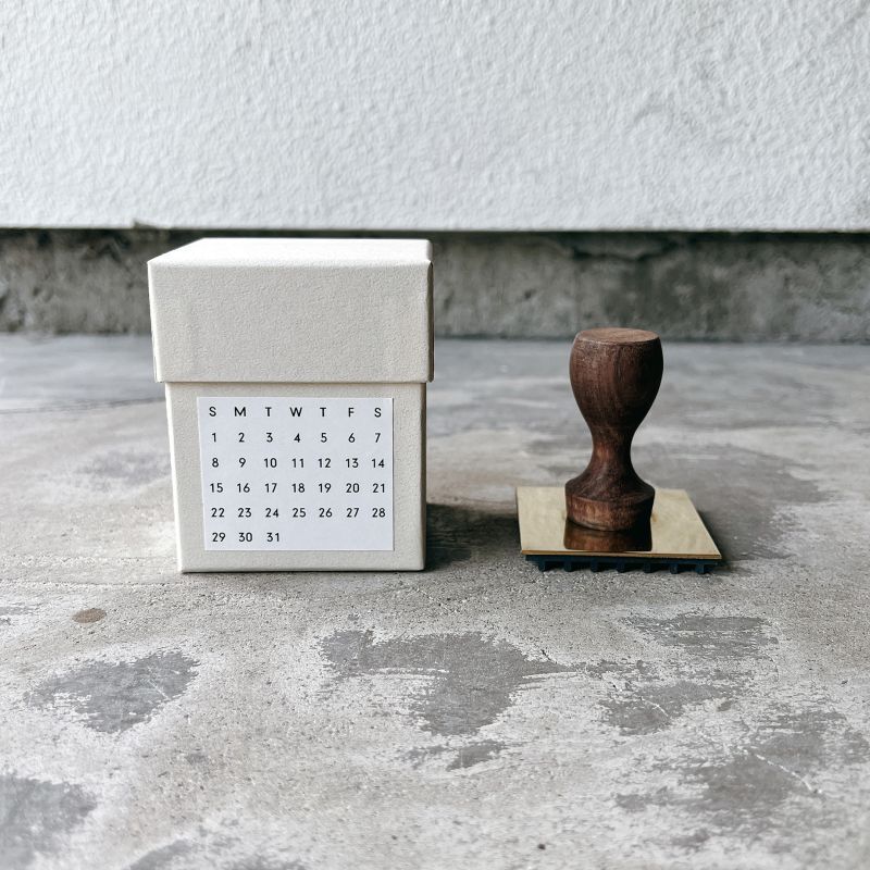By rearranging the 12 parts of rubber stamps parts, you can make a little calendar of any month. You can use the stamp to make your original calendar or notebook, to keep track of your schedule by stamping it in a corner of your notebook, or for party invitations or birthday wishes by stamping it on a card. The base plate is made of brass and the handle is made of walnut which are both changing gradually in color as you use. We hope you will enjoy the changing expressions.