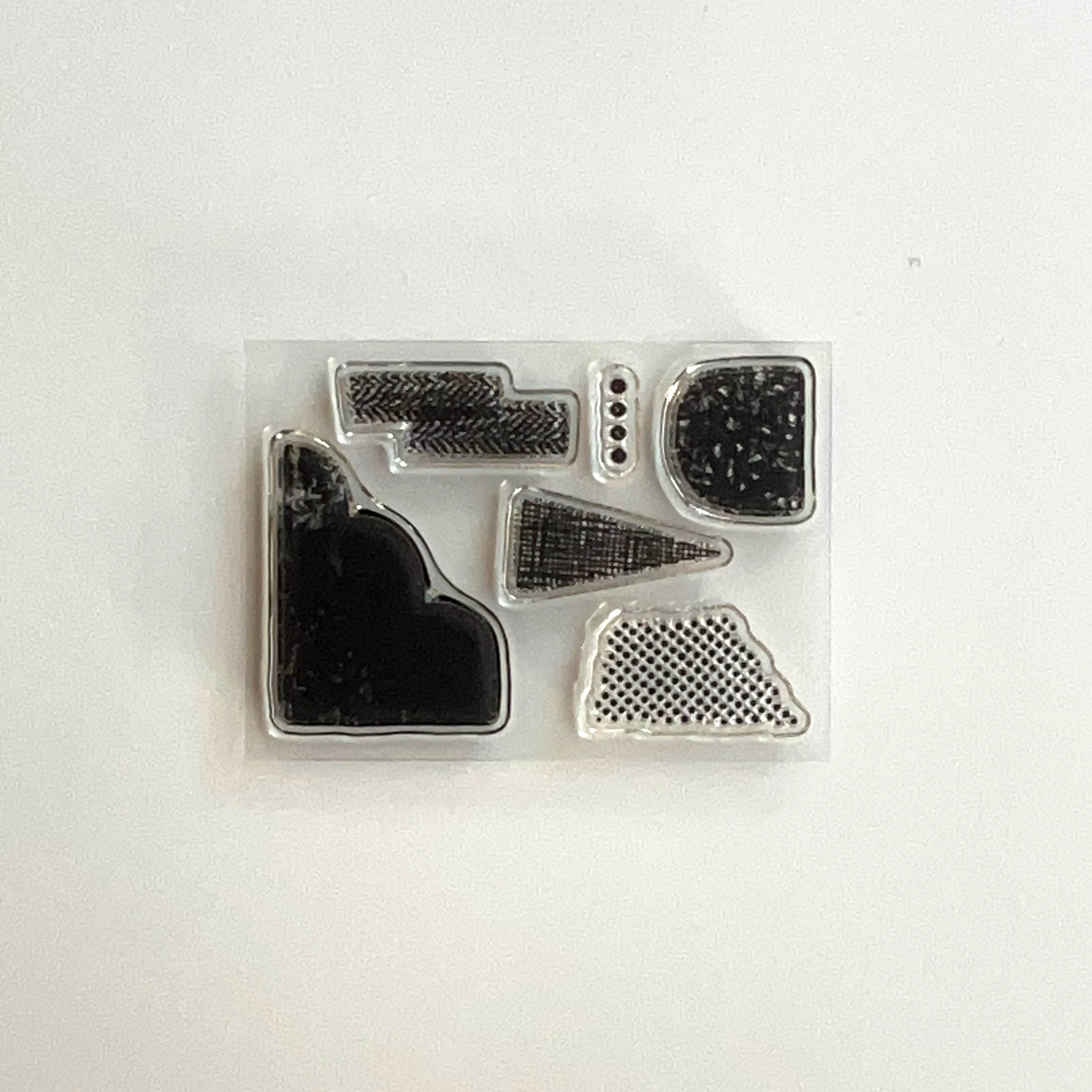 The rough surface as if stamped, the fabric-like pattern, and the blurred dots give it a more textured look than just a solid surface. By overlapping or combining with letter parts, you can enjoy designs with more depth. The acrylic block and the resin stamp parts are transparent, so you can place the stamps perfectly where you want to stamp them. Due to the characteristics of the material, delicate lines can be stamped beautifully. Enjoy stamping with JIZAI clear stamps freely!