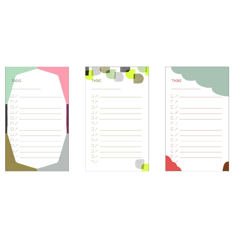 This set of small piece of paper is perfect for checking off your tasks. Assign one project to each sheet to keep all related tasks together and easy to review. The colorful design turns even an everyday to do list into a small poster when displayed on the wall. There are three different designs so you can tell multiple projects apart at a glance. It also works well when used in a planner. Use the included clip to keep the sheets neatly together.
