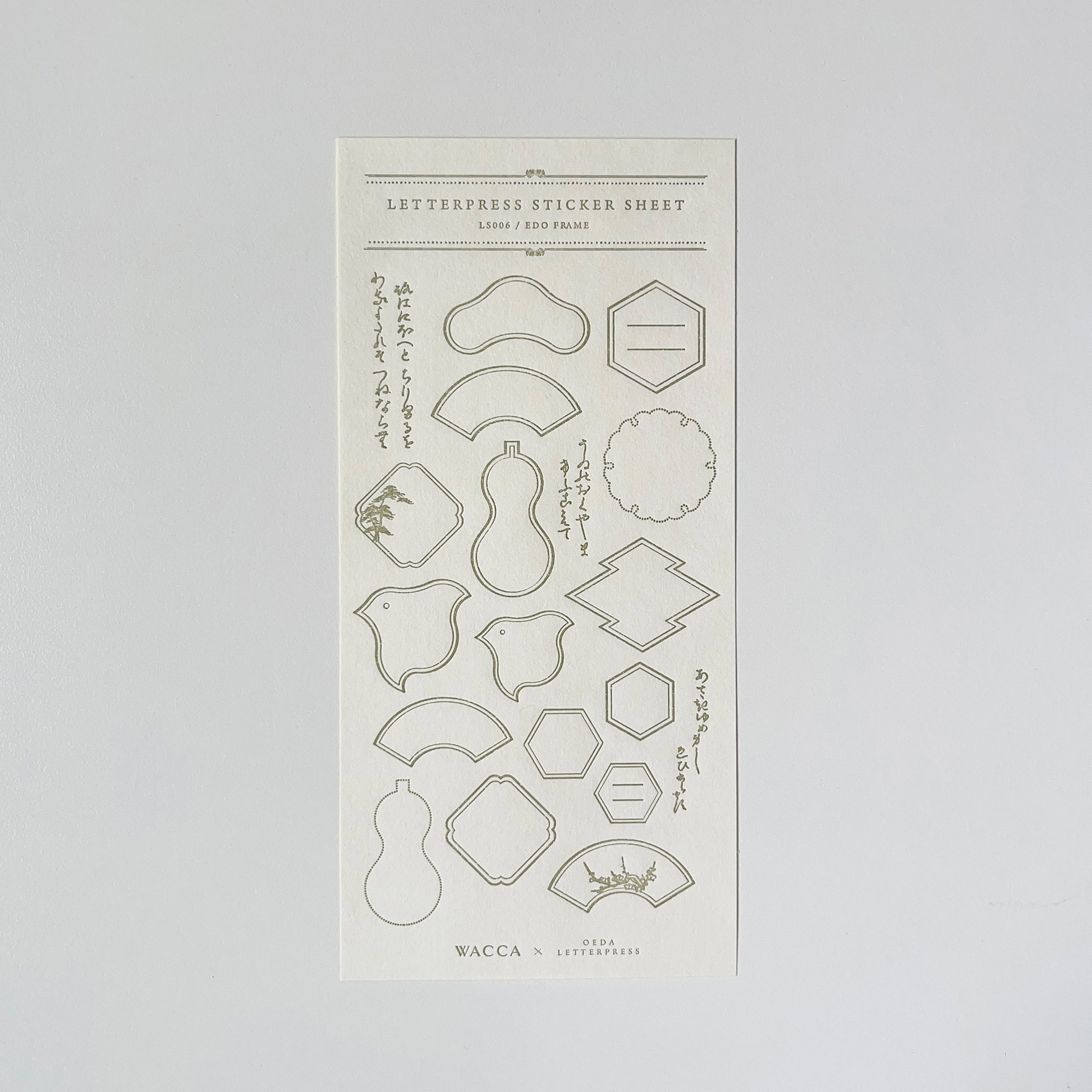 A sticker sheet by OEDA LETTERPRESS, featuring beautifully letterpress-printed motifs curated by WACCA JAPAN, a unique stationery brand specializing Japanese washi paper.