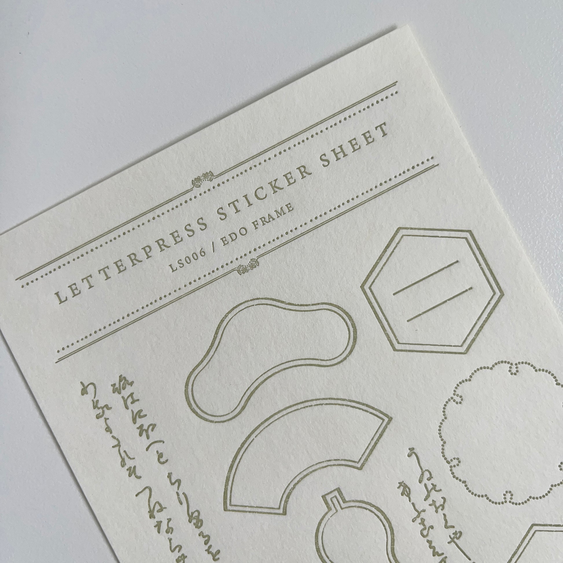 WACCA JAPAN Collaboration Letterpress Sticker Sheet EDO FRAME / Uguisu-iro (Olive Green)