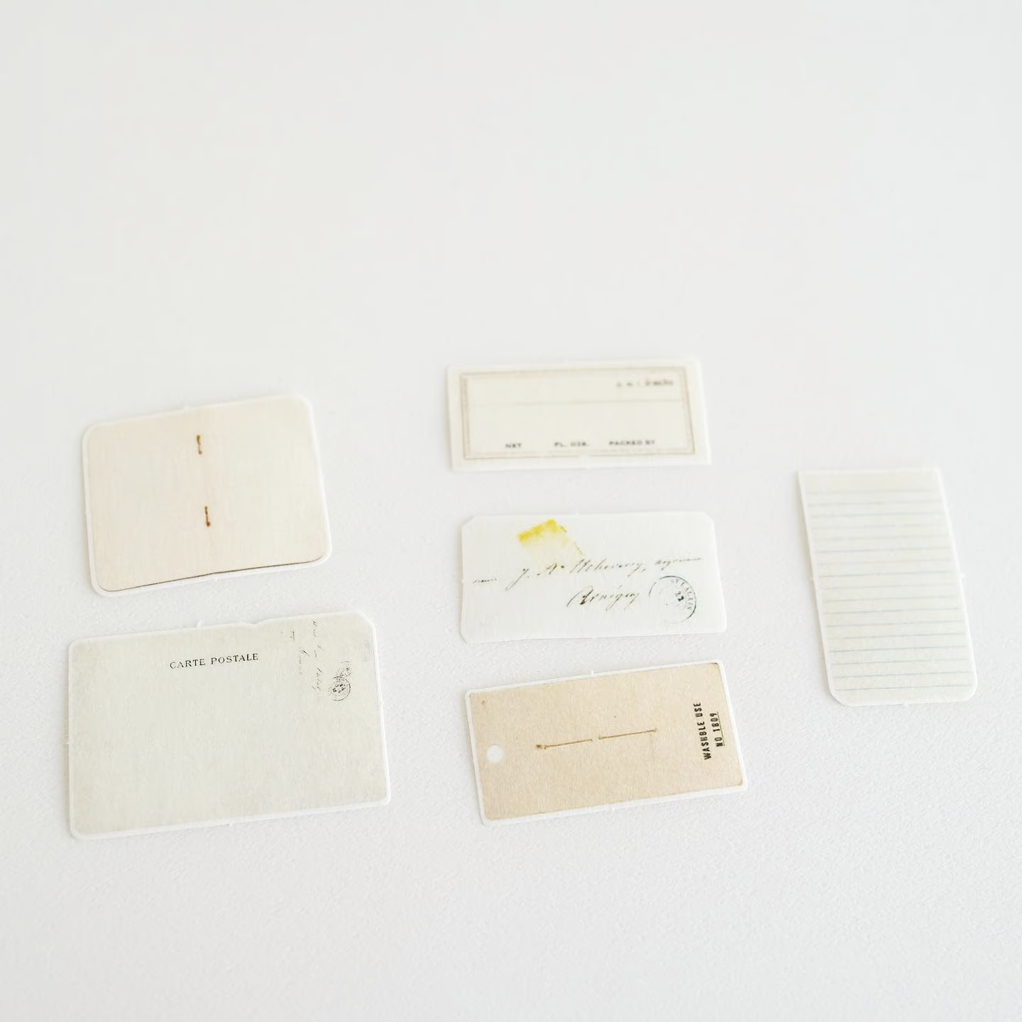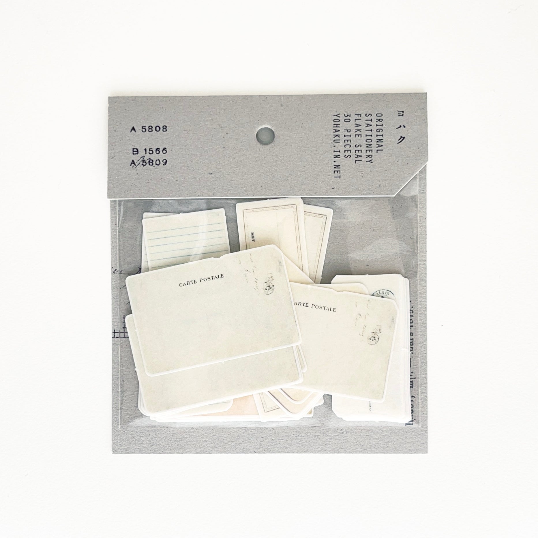 A set of flake stickers inspired by vintage paper pieces. Each design is carefully selected by YOHAKU to work beautifully as a base for collage. They’re great on their own or layered together for a more textured look. You can stamp on them, write on them, or mix them into your favorite decorations—so many creative possibilities!