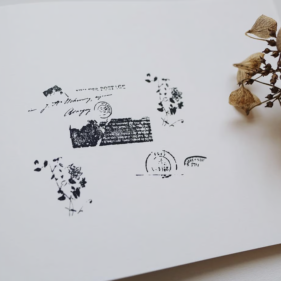 A clematis stamp drawn with the gentle, detailed lines that reflect YOHAKU’s signature style. The natural curves of the stems and petals bring a calm and graceful mood to your page. Perfect for journaling, collage, or card making.